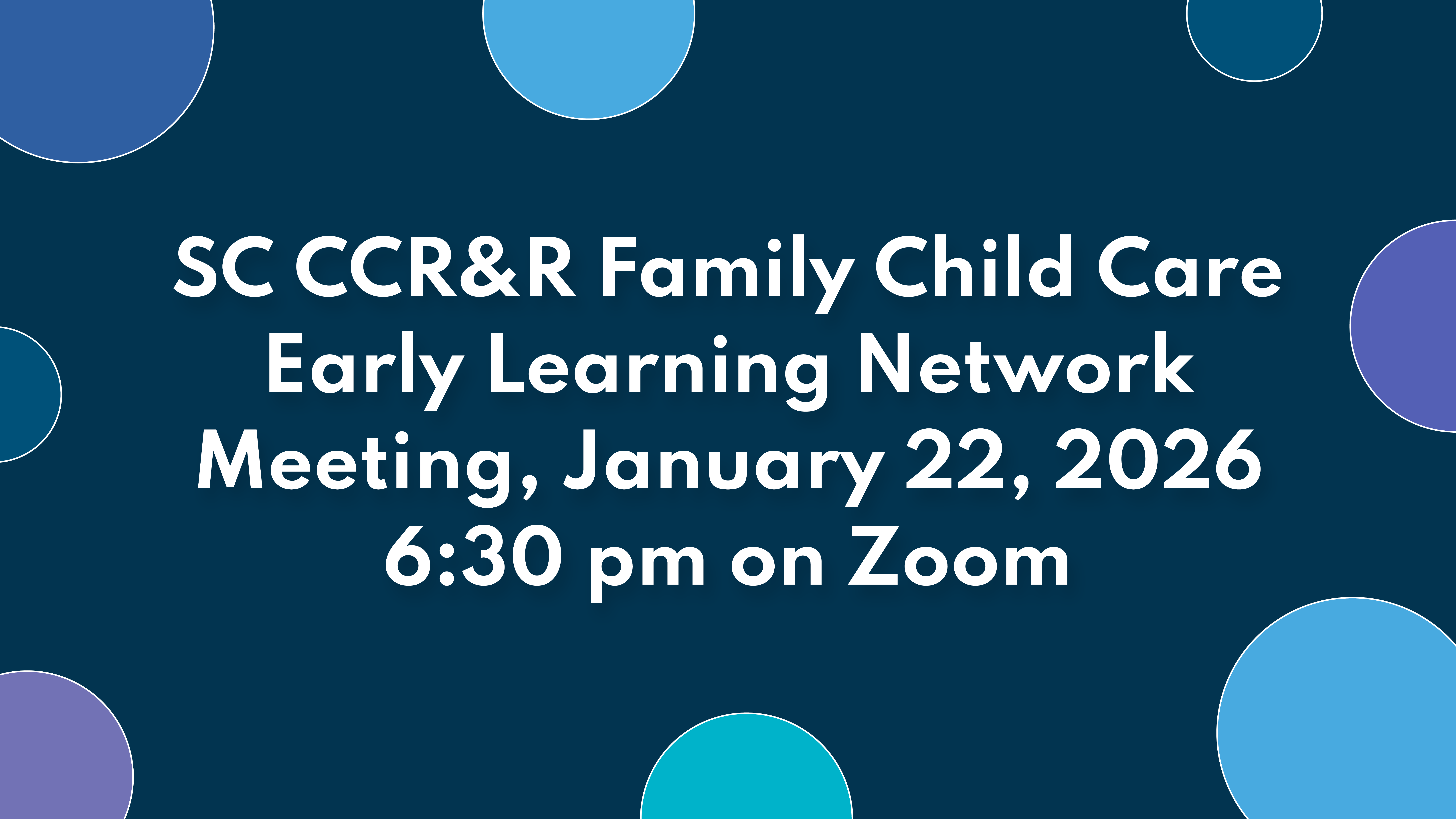 The Family Child Care Network will be meeting on Zoom on January 22nd, 2026 starting at 6:30 pm.